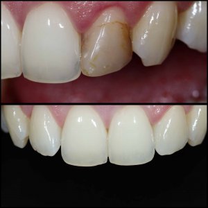 שחזור אסתטי ופונקציונלי של שן קדמית על ידי כתר על בסיס זרקוניה בהתאמת צבע אישית